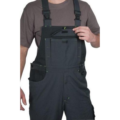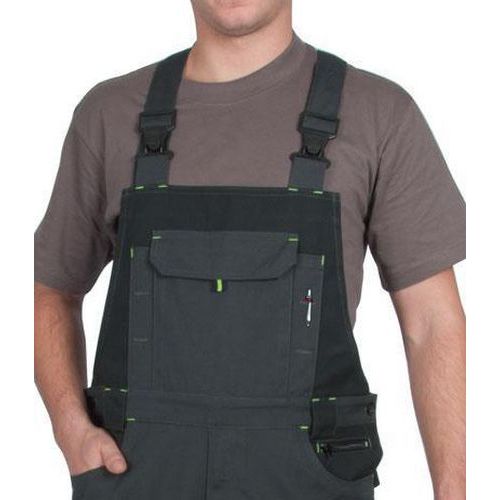 Sivé pánske montérky s náprsenkou s čiernymi doplnkami.