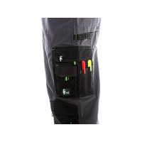 Sivé pánske montérky s náprsenkou s čiernymi doplnkami. Náprsný diel s väčším vreckom a malými vreckami na ceruzky. Veľké predné, menšie bočné a zadné vrecká s chlopňou schovajú telefón, meter a ďalšie drobné predmety potrebné na prácu. Pohodlné nosenie zaisťuje pevný pás s pútkami na opasok či vrecko na klince. Zdvojená partia kolien pomôže pri častom kľačaní. Výhodou je možnosť vloženia kolenných výstuh. Zapínanie na plastovú pracku. Materiál 65 % polyester, 35 % bavlna. EN ISO 13688: Táto medzinárodná norma určuje všeobecné požiadavky na vyhotovenie ochranných odevov z hľadiska ergonómie, neškodnosti, označenia veľkostí, starnutia, kompatibility a označovania ochranných odevov a na informácie, ktoré sú dodávané výrobcom s ochrannými odevmi.