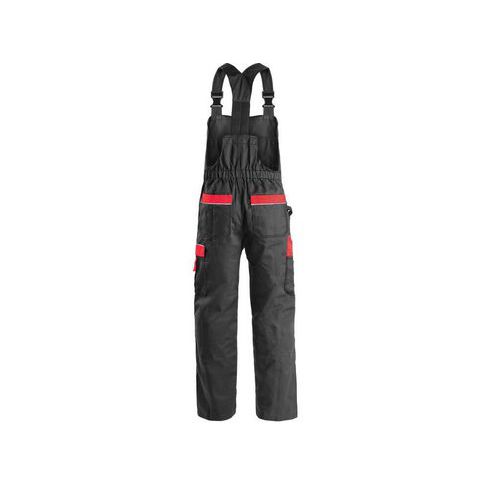 Pánske nohavice s náprsenkou, zdvojené kolená s možnosťou vloženia kolenných výstuh, predné klinové vrecká a všité vrecká na zips s pútkami na náradie, bočné multifunkčné vrecká, náprsenka s vreckami a stredovým otvorom, reflexné doplnky. Veľkosť: 46-64 Kategória: Pánske Predpisy: EN ISO 13688 Montérska kolekcia: CXS ORION Zloženie materiálu: 60% bavlna, 40% polyester Hmotnosť: 280 g/m2 Farba: čierna a červená