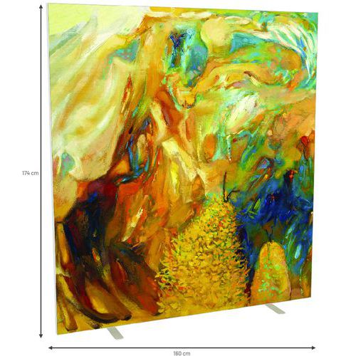 Plátenný panel v rôznych farebných vyhotoveniach na oddelenie priestoru. Plátno je ohňovzdorné v kategórii M1 a je možné ho prať pri 30°. Vybavený dvoma stabilnými nožičkami z bielej lakovanej ocele. Rýchla a jednoduchá montáž plátna. Záruka výrobcu pre zákazníka : 10 rokov