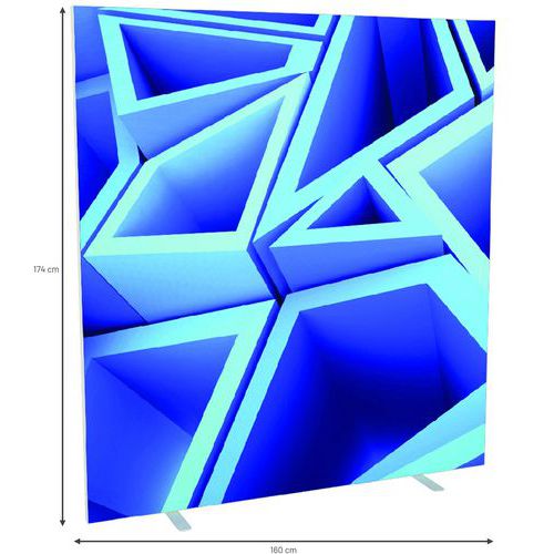 Plátenný panel v rôznych farebných vyhotoveniach na oddelenie priestoru. Plátno je ohňovzdorné v kategórii M1 a je možné ho prať pri 30°. Vybavený dvoma stabilnými nožičkami z bielej lakovanej ocele. Rýchla a jednoduchá montáž plátna. Záruka výrobcu pre zákazníka : 10 rokov