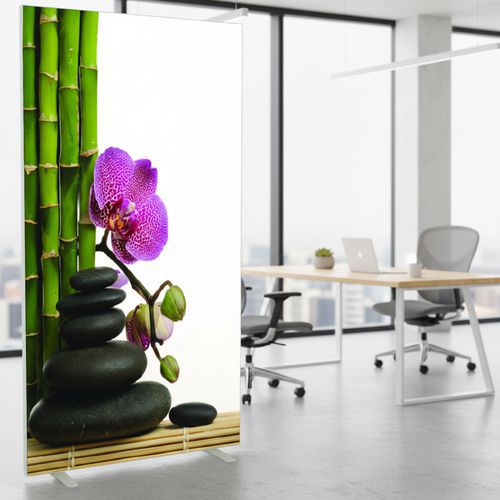 Plátenný paraván v rôznych farebných vyhotoveniach na oddelenie priestoru v kanceláriách. Plátno je ohňovzdorné v kategórii M1 a je možné ho prať pri 30°. Vybavený dvoma stabilnými nožičkami z bielej lakovanej ocele. Rýchla a jednoduchá montáž plátna.