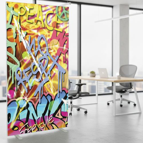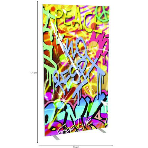 Plátenný paraván v rôznych farebných vyhotoveniach na oddelenie priestoru v kanceláriách. Plátno je ohňovzdorné v kategórii M1 a je možné ho prať pri 30°. Vybavený dvoma stabilnými nožičkami z bielej lakovanej ocele. Rýchla a jednoduchá montáž plátna.