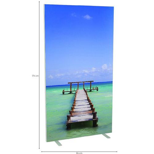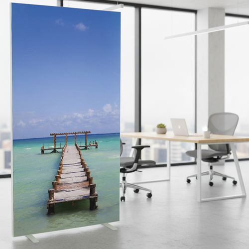 Plátenný paraván v rôznych farebných vyhotoveniach na oddelenie priestoru v kanceláriách. Plátno je ohňovzdorné v kategórii M1 a je možné ho prať pri 30°. Vybavený dvoma stabilnými nožičkami z bielej lakovanej ocele. Rýchla a jednoduchá montáž plátna.
