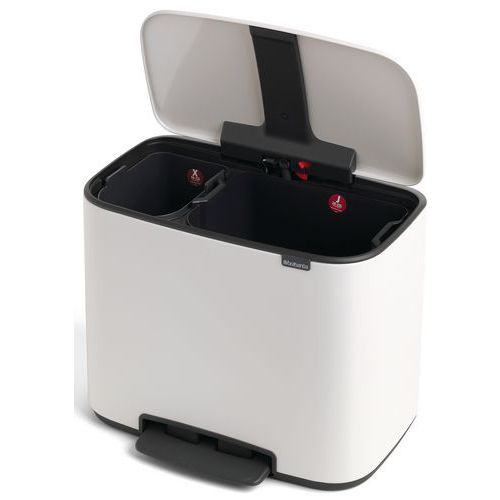 - Pedálový odpadkový kôš s tichým zatváraním veka, ľahkým nožným pedálom a 2 vložkami (11+23L) na triedenie odpadu.