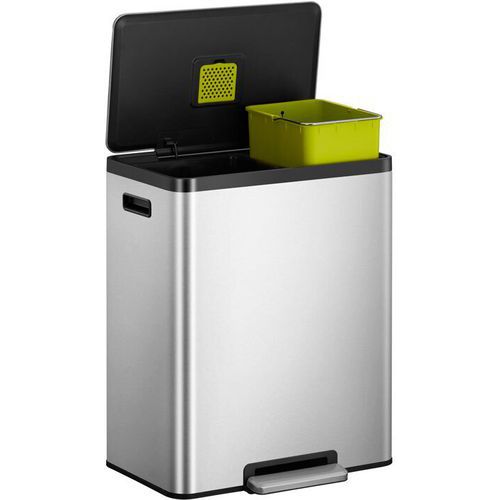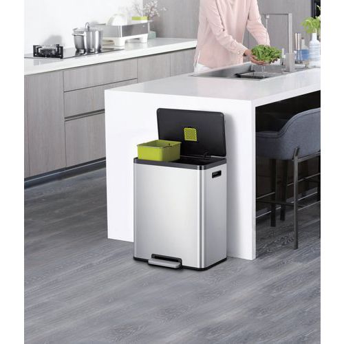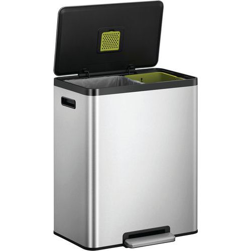 Vybavený mäkkým uzatváracím vekom s integrovaným pachovým filtrom a dvoma syntetickými vložkami (36+24 l) na triedenie odpadu.