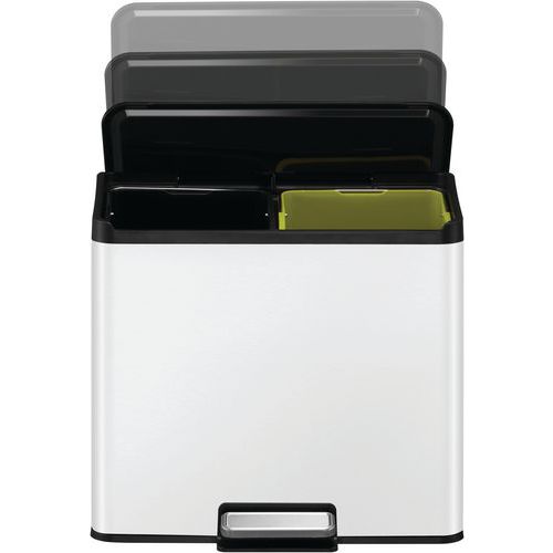 - Vybavený vekom s mäkkým zatváraním a 2 vložkami (2x15 l) na selektívne triedenie.