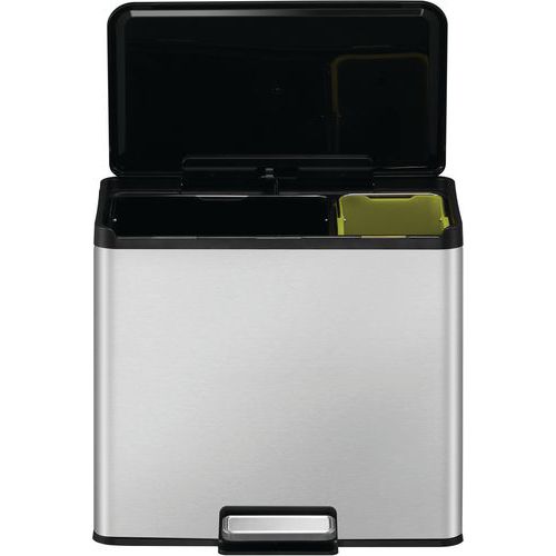 - Vybavený vekom s mäkkým zatváraním a 2 vložkami (20+9 l) na selektívne triedenie.