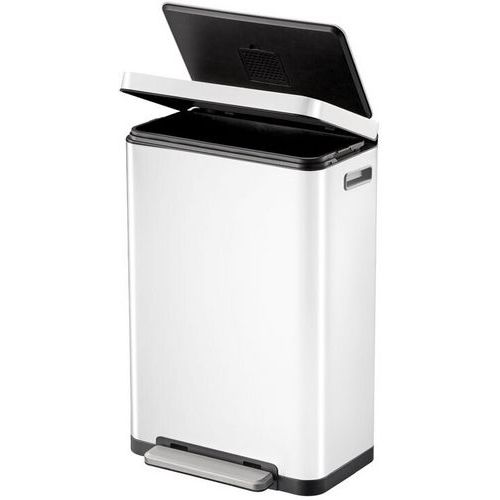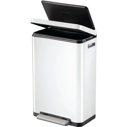 - Elegantný obdĺžnikový odpadkový kôš s extra širokým pedálom, plastovou vložkou, vekom s tichým zatváraním a funkciou stay-open.