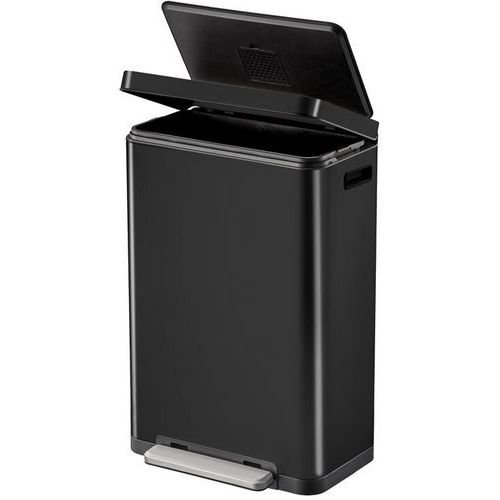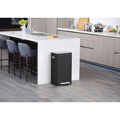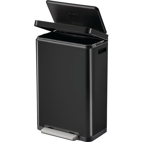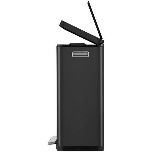 - Elegantný obdĺžnikový odpadkový kôš s extra širokým pedálom, plastovou vložkou, vekom s tichým zatváraním a funkciou stay-open.