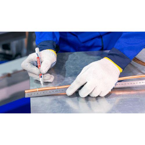 - Permanentná fixka vhodná do priemyselného prostredia na rôzne povrchy (drevo, kov, sklo, papier, plast, guma, porcelán, betón, pneumatiky).