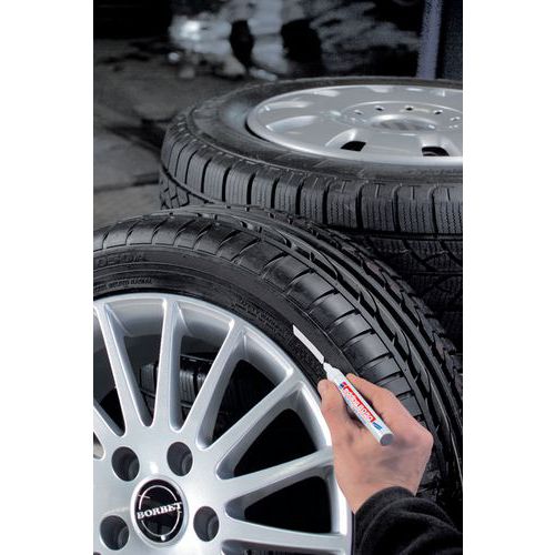 - Permanentný popisovač špeciálne určený na písanie na pneumatiky a iné gumové povrchy.
