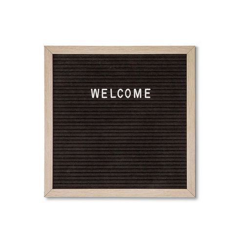 Písmenková tabuľa čierna, hnedý rám, nasúvacie písmenká, 30x30 cm