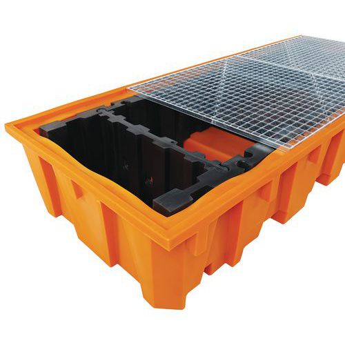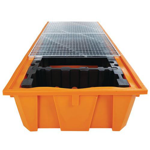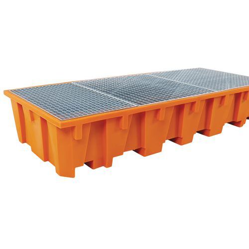 Plastová záchytná vaňa Manutan Expert, kapacita 1 650 l, s kovovým roštom