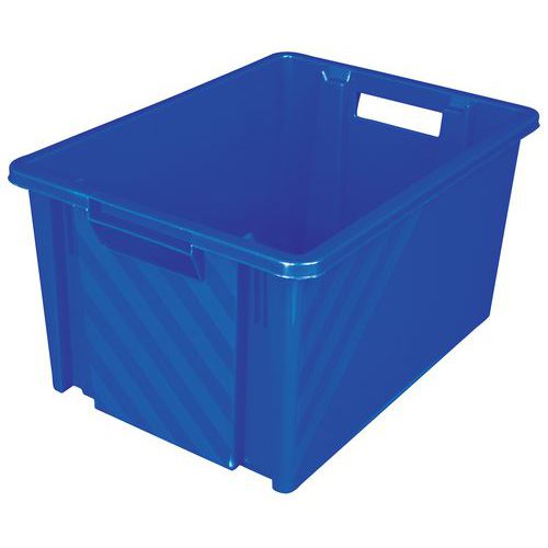 Stohovateľný kontajner s rukoväťami pre ľahkú manipuláciu. Vysoká odolnosť voči mechanickým a chemickým vplyvom. Možnosť stohovania na seba. Vystužené steny pre vyššiu pevnosť.