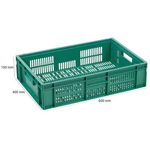 Plastová Euro prepravka Manutan Expert s perforovanými stenami, zelená, 150 x 400 x 600 mm, 28 l Plastová Euro prepravka Manutan Expert s perforovanými stenami, zelená, 150 x 400 x 600 mm, 28 l