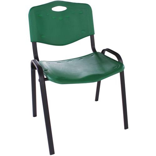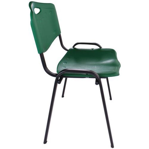Plastové stoličky ISO s oceľovou konštrukciou a umývateľným povrchom. Dajú sa stohovať na seba až do maximálneho počtu 10 kusov. Konštrukcia je čierna a operadlo je vyrobené z polypropylénu s výškou 33,5 cm. Nohy majú plastové zátky s matnou povrchovou úpravou práškovou farbou. Tieto stoličky sú vhodné do prostredia, kde je dôležitá jednoduchá údržba.