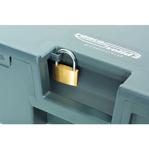 Odolný proti striekajúcej vode a prachu. Široké rukoväte na pohodlné prenášanie. Uzatvárateľné a uzamykateľné pomocou visiaceho zámku (nie je súčasťou balenia).