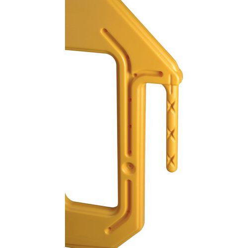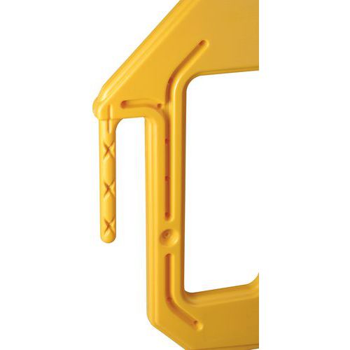 - Štandardne je vybavený háčikom a očkom na spojenie niekoľkých zábran do radu alebo štvorca.