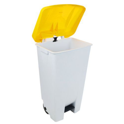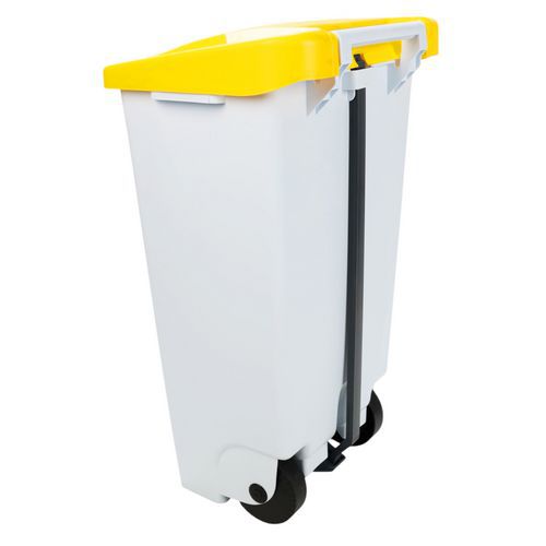 Plastový odpadkový kôš Manutan Expert Handy, objem 120 l, biely/žltý