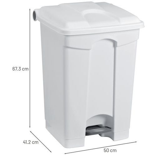 Plastové nášľapné odpadkové koše s hladkým povrchom pre ľahké čistenie.