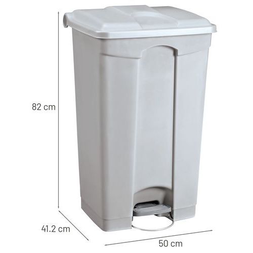 Plastové nášľapné odpadkové koše s hladkým povrchom pre ľahké čistenie, s kolieskami a stabilizátorom zabraňujúcim prevrhnutiu.