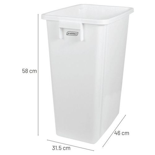 Plastový odpadkový kôš Probbax na triedený odpad, bez veka, 60 l, šírka 46 cm, biela