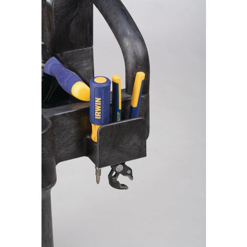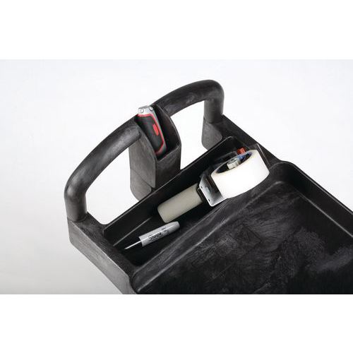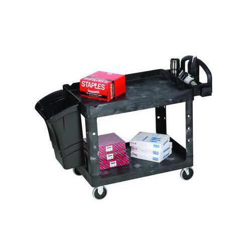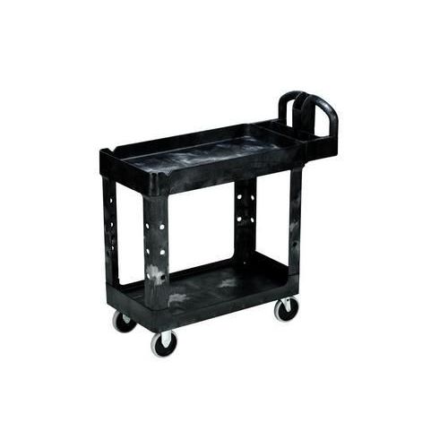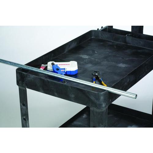Robustné plastové vozíky s dvoma policami vhodné na prepravu materiálu a tovaru. Police majú 4cm vyvýšené hrany, ktoré zabraňujú vypadávaniu tovaru z vozíka. Podperné dierované nohy umožňujú umiestnenie priehradiek či rúrok na prichytenie náradia a materiálu. Manipuláciu uľahčuje ergonomické držadlo na jednej strane vozíka, vybavené praktickými poličkami a hákmi. Pojazdnosť zaisťujú dve pevné a dve otočné kolesá s brzdou. Behúň kolesa je vyrobený z nešpiniacej gumy.