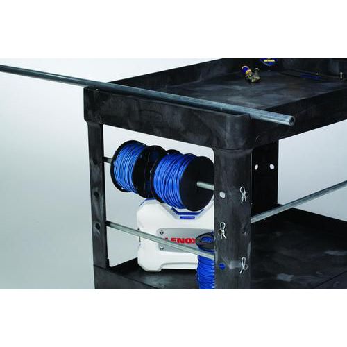 Robustné plastové vozíky s dvoma policami vhodné na prepravu materiálu a tovaru. Police majú 4cm vyvýšené hrany, ktoré zabraňujú vypadávaniu tovaru z vozíka. Podperné dierované nohy umožňujú umiestnenie priehradiek či rúrok na prichytenie náradia a materiálu. Manipuláciu uľahčuje ergonomické držadlo na jednej strane vozíka, vybavené praktickými poličkami a hákmi. Pojazdnosť zaisťujú dve pevné a dve otočné kolesá s brzdou. Behúň kolesa je vyrobený z nešpiniacej gumy. Nosnosť (kg) : 220 kg