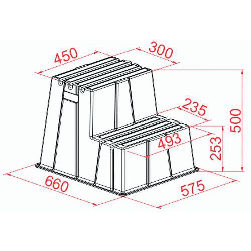 Plastová pracovná podesta Manutan Expert, červená, 2 stupne