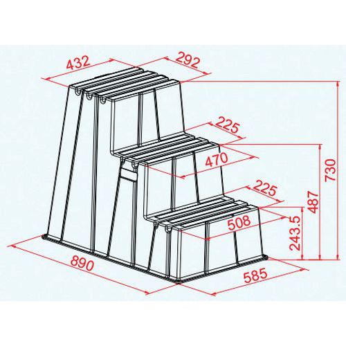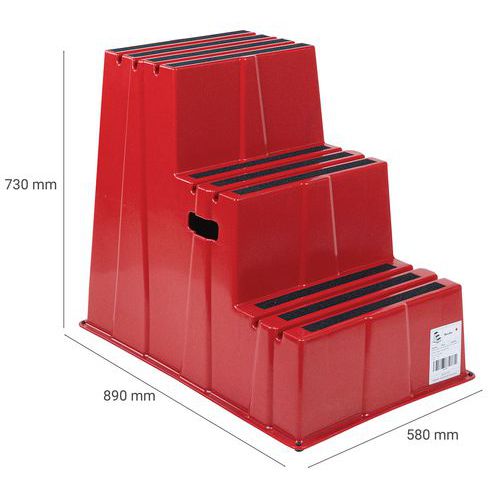 Plastová pracovná podesta Manutan Expert, červená, 3 stupne