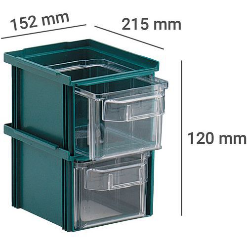 - Vnútorná vysúvacia časť vyrobená z transparentného plastu umožňuje rýchlu kontrolu obsahu boxu.