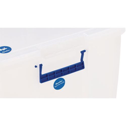 Plastové úložné boxy s vekom na klipsu Manutan Expert, 85 l