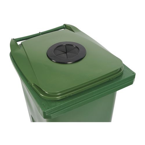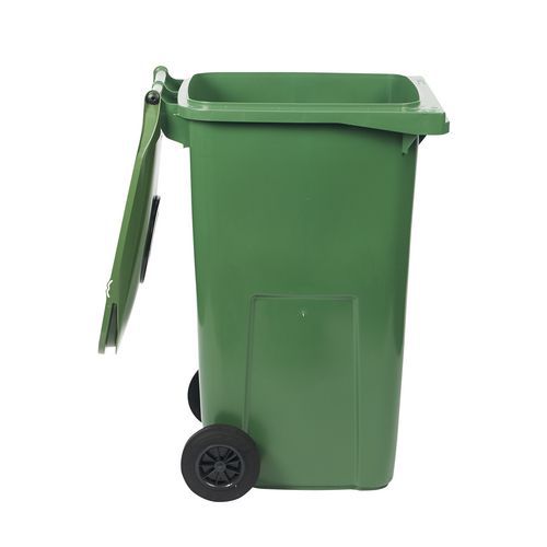 Plastová vonkajšia odpadová nádoba na triedený odpad s otvorom, objem 240 l, zelená