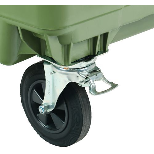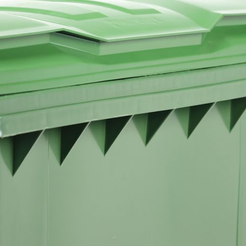 Plastové kontajnery s vekom na odpad vo viacerých farebných variantoch. Vyrobené z vysokohustotného polyetylénu so stabilizáciou proti UV žiareniu. Jednoduchú manipuláciu zaisťujú štyri kolesá s priemerom 200 mm, z toho dve sú vybavené brzdou. Kontajnery sú vybavené praktickými držadlami na troch stranách.