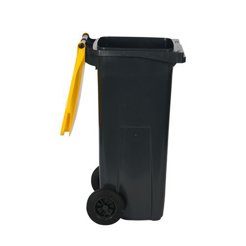 Plastová vonkajšia odpadová nádoba na triedený odpad, objem 120 l, čierna/žltá