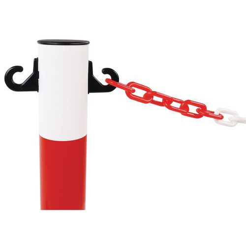 Stĺpiky sú vybavené štyrmi odnímateľnými háčikmi vo dvoch výškach na umiestnenie reťazí.