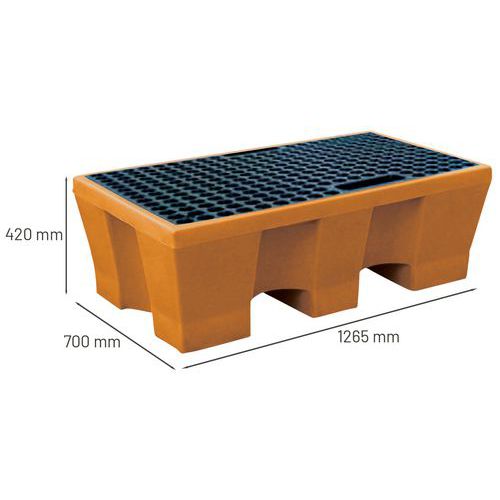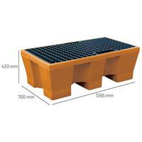 Plastová záchytná vaňa Manutan Expert s plastovým roštom, na 2 sudy, kapacita 240 l