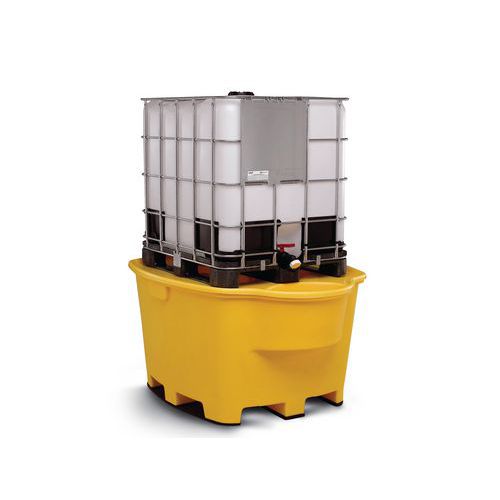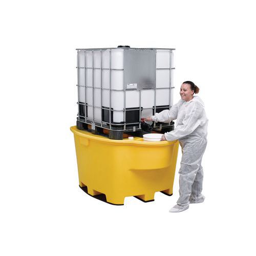 Variant na jeden IBC kontajner je vybavený protišmykovými lištami pre jednoduchú manipuláciu s paletovým vozíkom a proti nechcenému pohybu vane pri uložení na palete.