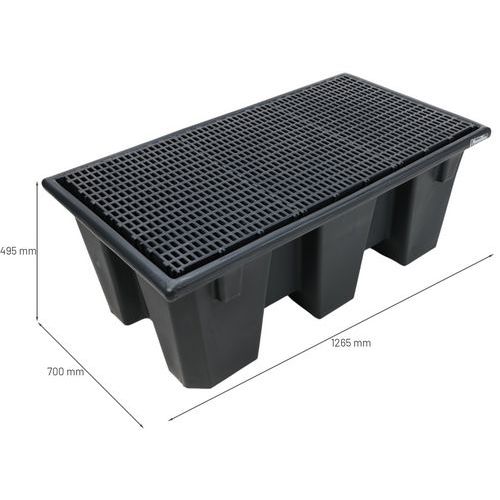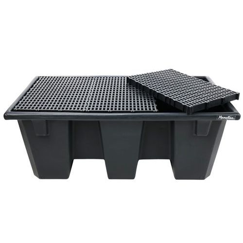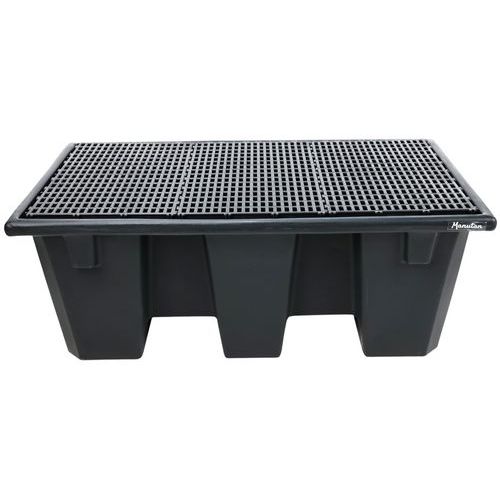 Plastová záchytná vaňa z recyklovaného PE - Manutan Expert, kapacita 220 l, plastový rošt