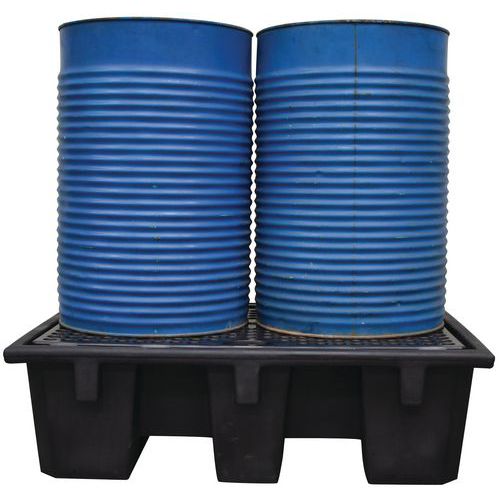 Plastová záchytná vaňa z recyklovaného PE - Manutan Expert, kapacita 240 l, polyetylénový rošt