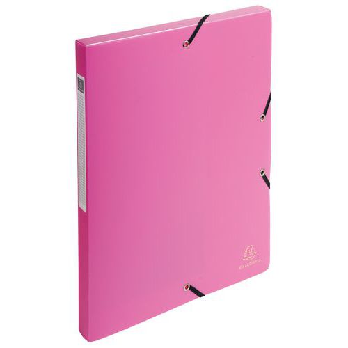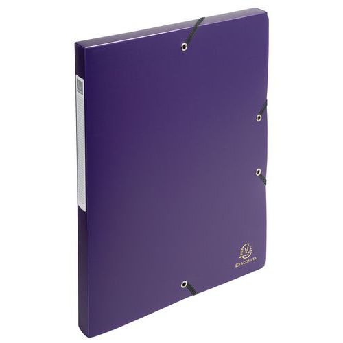 Pevné, nepriehľadné plastové zložky, ktoré chránia dokumenty a zaisťujú ich dôvernosť. Štítok na chrbte pre ľahkú identifikáciu obsahu. Zapínanie na elastický opasok. Balenie obsahuje 8 ks zložiek. Rôzne farby: modrá, tmavo modrá, čierna, oranžová, ružová, červená, zelená, fialová.