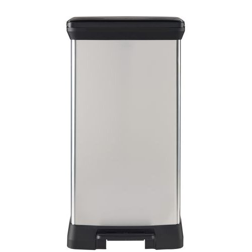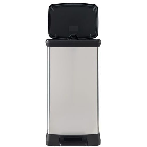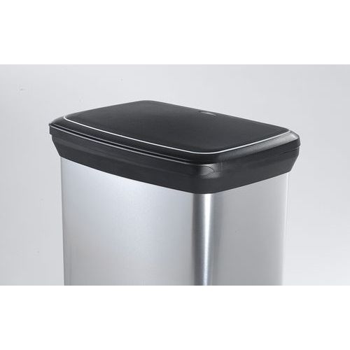 Nášľapný odpadkový kôš z plastu s metalizovaným povrchom. Vhodný do kancelárií aj domácností. Otváranie koša nožným pedálom. Integrovaný držiak na odpadkové vrecia. Soft Close tiché zatváranie. Jednoduchá údržba.