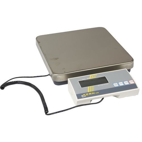 Plošinová váha Kern s jednoduchým ovládaním vhodná na každodenné použitie v prevádzkach, na poštách a pod.Displejová jednotka je umiestnená na kábli pre jednoduchšiu manipuláciu a je možné ju pripevniť na stenu.