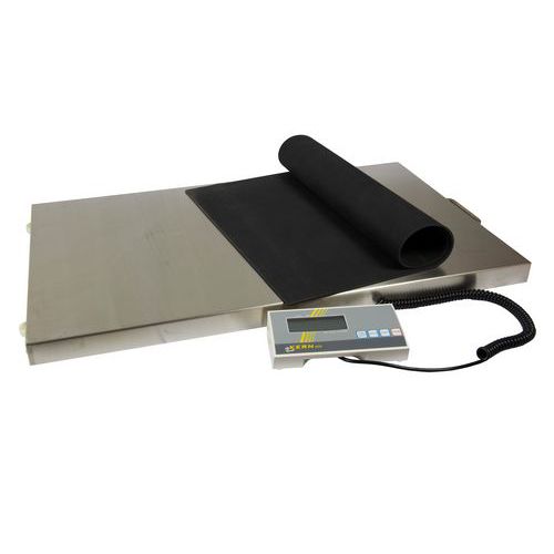 - Plošinová váha Kern s veľkou vážiacou plochou vhodná na váženie balíkov, rozmerných predmetov alebo i zvierat.