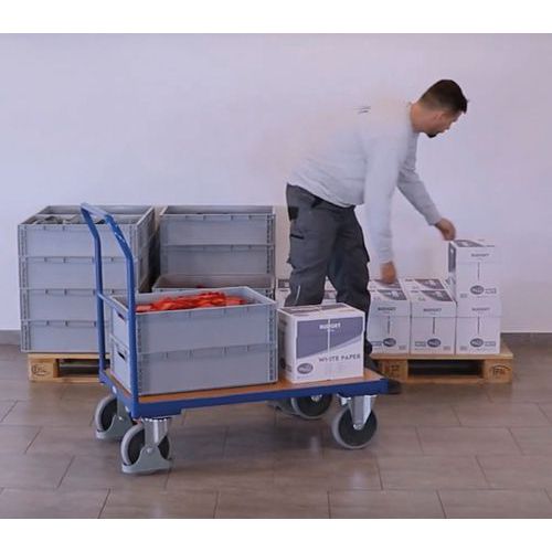 Plošinový vozík s madlom, do 500 kg, 101,5 x 112,5 x 70 cm, modrý