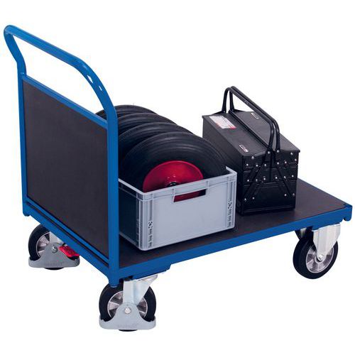 Plošinový vozík s madlom s plnou výplňou, do 1 000 kg, 101,5 x 133 x 80 cm, modrý