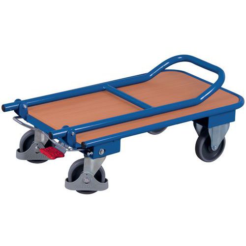 Plošinové vozíky so skladacím madlom Ložná plocha z MDF dosky. Nakladacia výška 265 mm. 2 pevné a 2 otočné kolieska s brzdou EasySTOP. Šedá kolesá z termoplastickej gumy nezanechávajúce stopy na plastovom ráfiku s presnými guličkovými ložiskami. Povrchová úprava rámu práškovou farbou podľa stupnice RAL. Odolné proti nárazu a poškriabaniu. Centrálny brzdový systém EasySTOP ľahkým zošliapnutím pedála zablokuje obe otočné kolesá v akejkoľvek pozícii. Na ovládanie pedála nie je potrebná pracovná či ochranná obuv. Nosnosť (kg) : 250