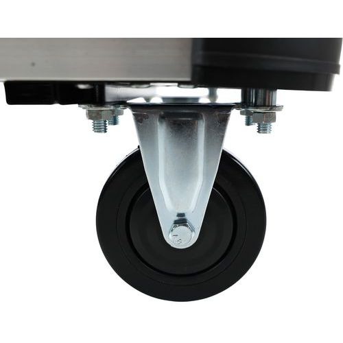 - Pojazdnosť zaisťujú polyamidové kolesá s priemerom 100 mm, dve pevné kolesá a dve otočné s brzdou.