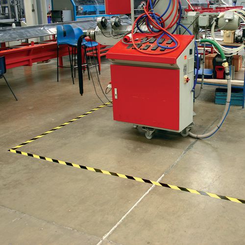 - Vinylová samolepiaca páska na podlahy na označenie pracovného priestoru v skladoch a priemyselných podnikov.